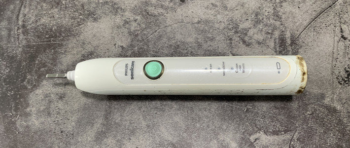 虽然每次使用电动牙刷后都会对刷头和手柄进行清洗,但是随着时间的推移,牙刷手柄的外壳还是不可避免的老化了。