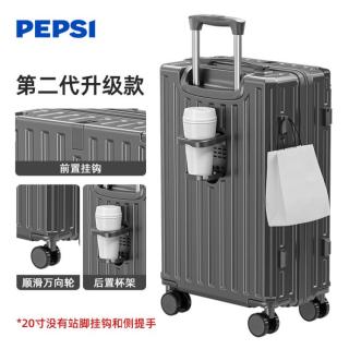 DULA行李箱高颜值带杯架多功能男拉杆箱女旅行箱密码箱子飒灰棕24