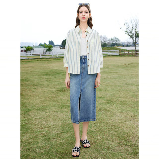 七夕约会穿搭:蓝条纹衬衫