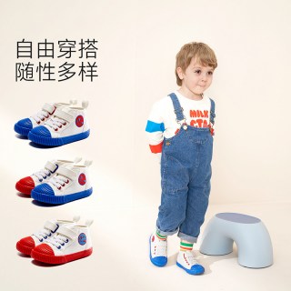 卡特兔 儿童帆布鞋女春秋新款高帮小白鞋男童幼儿园鞋室内鞋子53.1元(需用券)