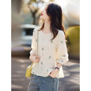 苏醒的乐园 春季时尚休闲通勤文艺小清新甜美上衣刺绣衬衫147.22元 -