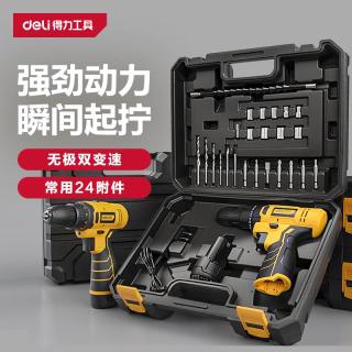 得力 手电钻电动螺丝刀锂电钻家用充电式起子机电动工具箱套装102.08元 -