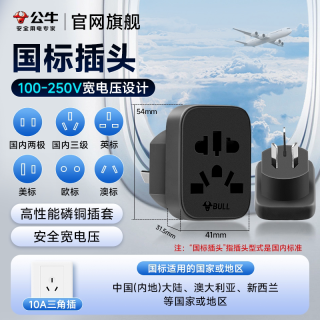 环球旅行的充电利器:公牛多国旅行转换插头GN-L10U15