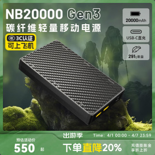 奈特科尔 超薄碳纤维充电宝 2万毫安550元 -
