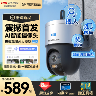 海康威视 4g文搜智能AI监控摄像头终身免流量400万高清室外监控家用户外360度无死角无限流量564.05元(需用券) -